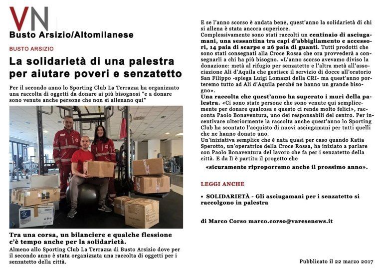 Sporting Club La Terrazza: raccolta per canile di Busto Arsizio